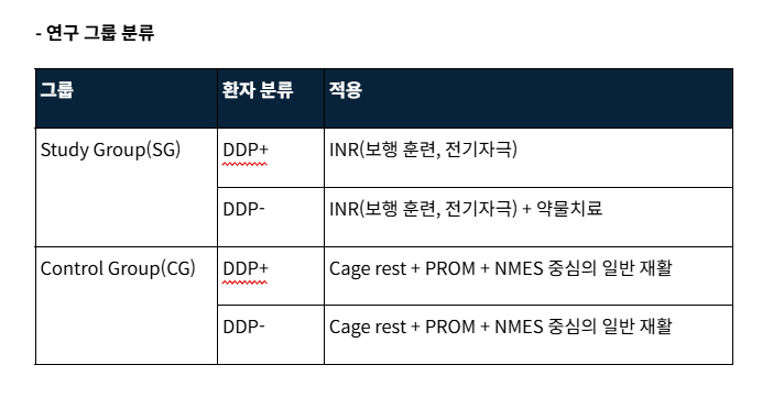 1) ์ฐ๊ตฌ ๋ชฉ์ ๋ฐ ์ค๊ณ - ๋ชฉ์ : INR์ด ๊ธ์ฑ IVDE ์์ ํ ๋ณดํ ํ๋ณต ์๋ ๋ฐ ๋น์จ์ ํฅ์์ํค๋์ง ํ๊ฐ - ์ฐ๊ตฌ ๋์์ธ: Retrospective controlled study (n=367, SG 262 vs CG 105) - ํ์๊ตฐ: Hansen type I IVDE, T10โL3, ์์ ํ 3โ5์ผ ๋ด hemilaminectomy ์ํ ํ์
